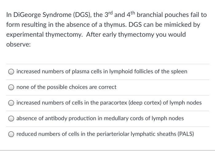 Digeorge syndrome 3rd and 4th. Therefore patients can present with increase susceptibility to infection. Categories Sketchy Path. Hypoplasia of the thymus.