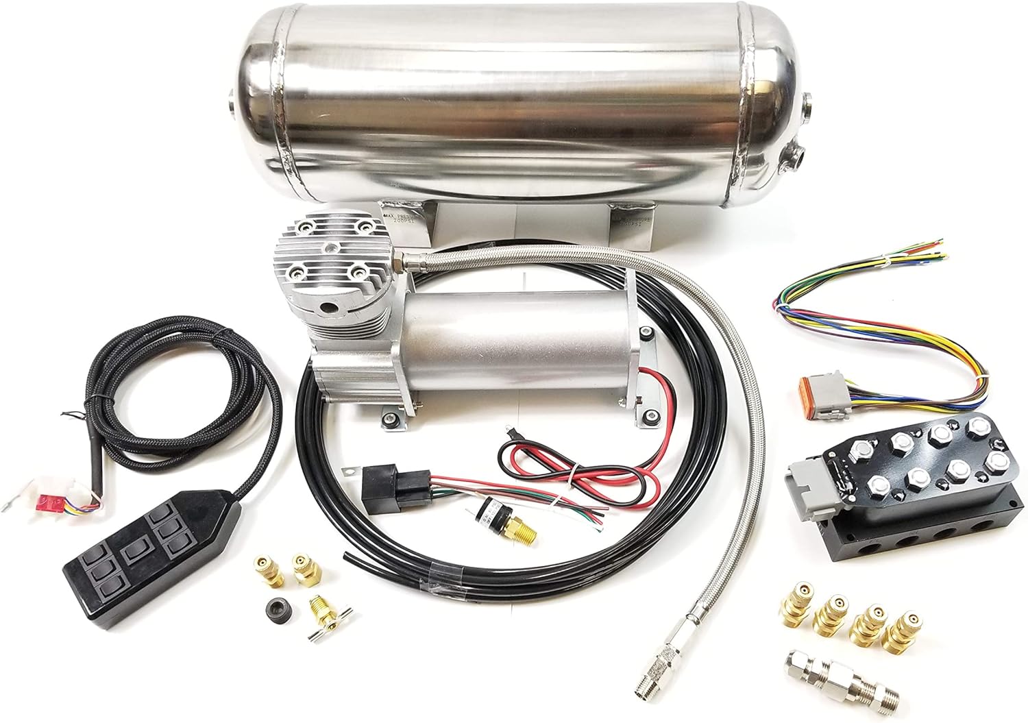 Another great feature ofAVS controllers is the ability to integrate them into your alarm system with the dedicated circuit for lifting and lowering your air suspension with your car alarm remote control. Includes several components that will dramatically improve the suspension geometry to give your old muscle car modern drivability. They are air supply the air bags and the height control valves.