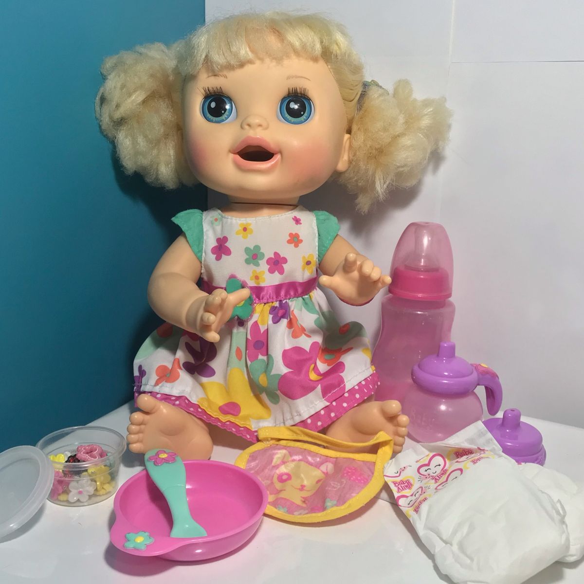 Plus her own soft teddy bear for the trip. Baby Alive Real As Can Be Baby. She is in beautiful gently loved condition.