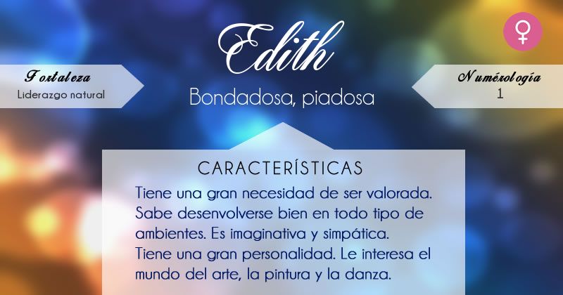 Significado del nombre edith. Historia del nombre Edith. En ese sentido el camino de la vida del número ocho es alta así. Para hacerlo automaticamente selecciona tu fecha.
