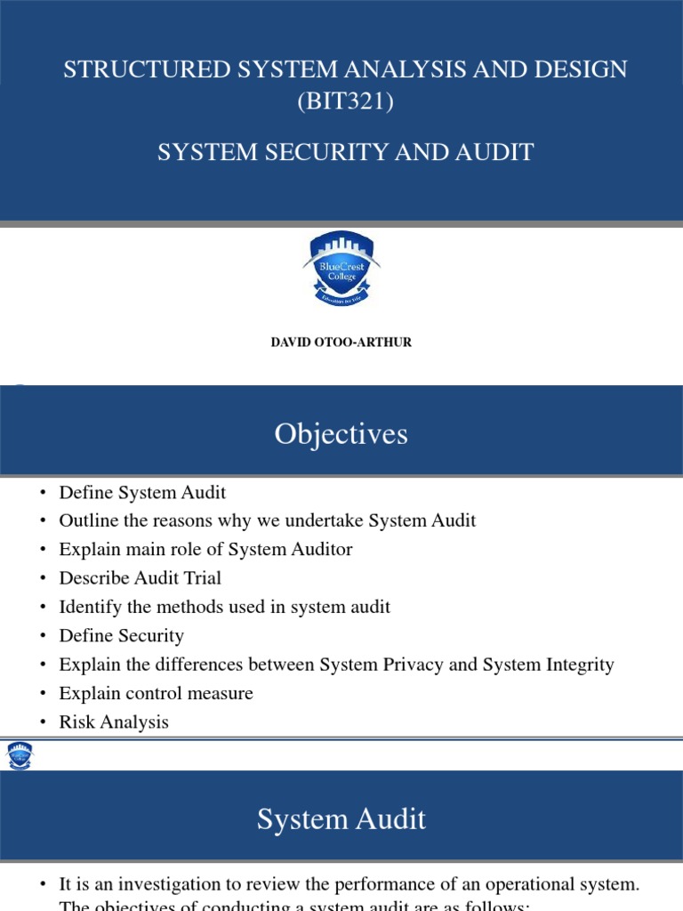 Audit considerations in system analysis and design. Systems Analysis and Design 7 2. Properties of a System. An audit is an in-depth review and analysis of a system prototype process or an idea.